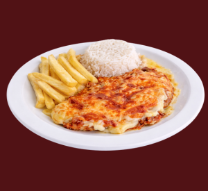 Deliciosa e generosa parmegiana de filé mignon - acompanha arroz e fritas.